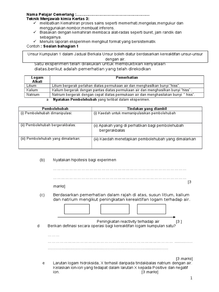 Contoh Soalan Kertas 3 Chemistry Form 4